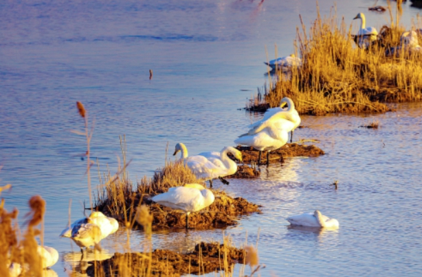 來濟越冬大天鵝黃河濕地舞翩躚